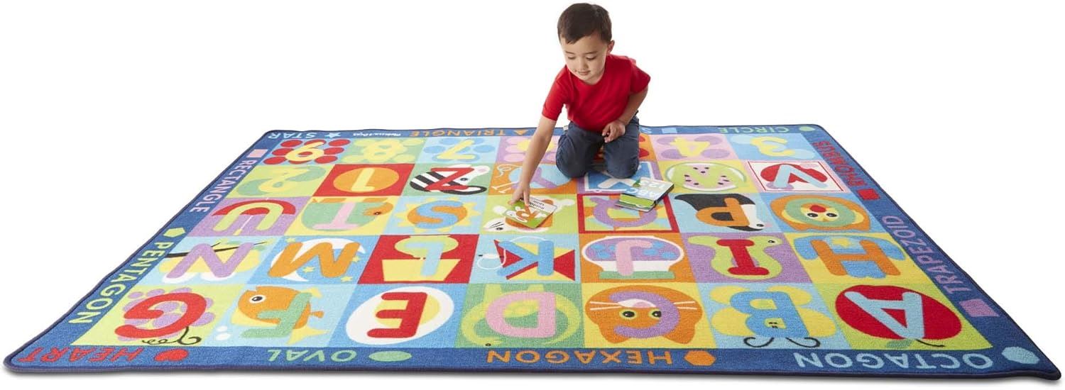 Jumbo Activity Rug ABC 123 with 36 Playing Cards 96239 – Melissa & Doug Large Educational Alphabet & Number Play Mat for Kids